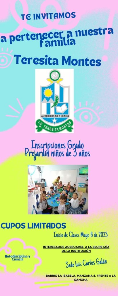 En compañía de la señora Secretaria de Educación Municipal Paula Andrea Huertas, directivos y docentes de la institución educativa, se dio apertura hoy al grado prejardín para niños de 3 años. Con este grado Teresita Montes…