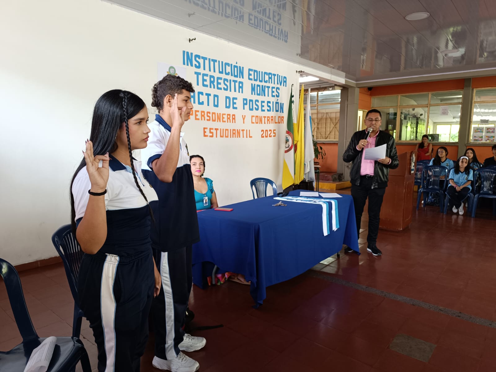 Realizamos esta mañana el acto de posesión del señor contralor estudiantil y la señorita personera escolar 2025. #TeresitaMontesEsDemocracia